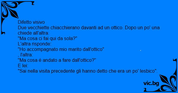 Due vecchiette chiacchierano davanti ad un ottico. Dopo un po' una chiede all'altra: