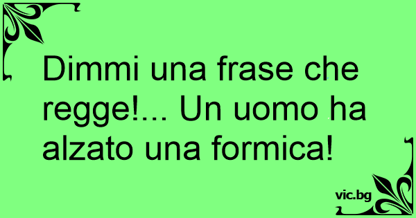Dimmi una frase che regge!... Un uomo ha alzato una formica!