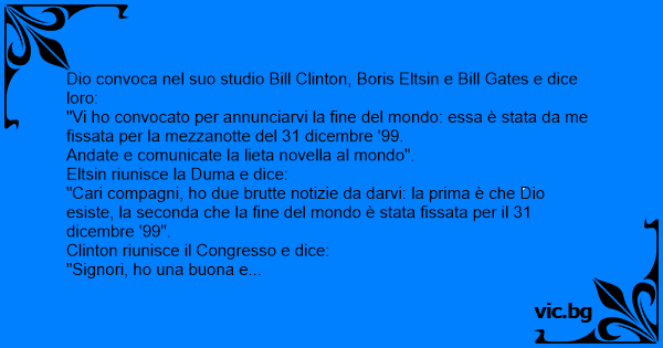 Dio convoca nel suo studio Bill Clinton, Boris Eltsin e Bill Gates e dice loro: