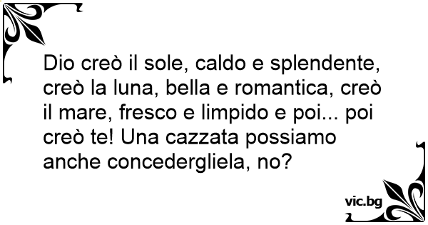 Dio creò il sole, caldo e splendente, creò la luna, bella e romantica, creò il mare, fresco e limpido e poi... poi creò te! Una саzzата possiamo anche concedergliela, no?
