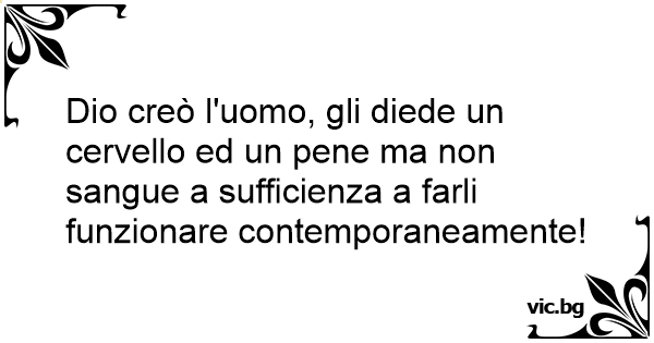 Dio creò l'uomo, gli diede un cervello ed un pene ma non sangue a sufficienza a farli funzionare contemporaneamente!
