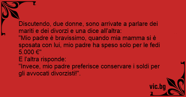 Discutendo, due donne, sono arrivate a parlare dei mariti e dei divorzi e una dice all'altra: