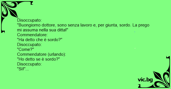 "Buongiorno dottore, sono senza lavoro e, per giunta, sordo. La prego mi assuma nella sua ditta!"