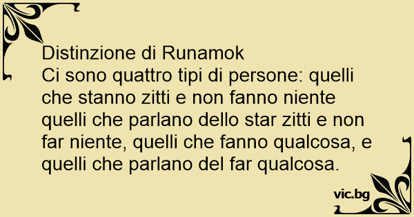 Ci sono quattro tipi di persone: quelli che stanno zitti e non fanno niente quelli che parlano dello star zitti e non far niente, quelli che fanno qualcosa, e quelli che parlano del far qualcosa.