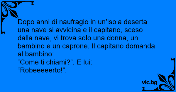 Dopo anni di naufragio in un’isola deserta una nave si avvicina e il capitano, sceso dalla nave, vi trova solo una donna, un bambino e un caprone. Il capitano domanda al bambino: