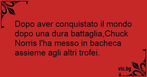 Dopo aver conquistato il mondo dopo una dura battaglia,Chuck Norris l'ha messo in bacheca assieme agli altri trofei.