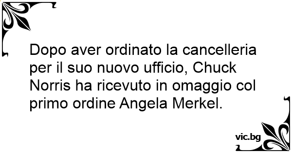 Dopo aver ordinato la cancelleria per il suo nuovo ufficio, Chuck Norris ha ricevuto in omaggio col primo ordine Angela Merkel.