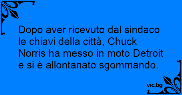 Dopo aver ricevuto dal sindaco le chiavi della città, Chuck Norris ha messo in moto Detroit e si è allontanato sgommando.