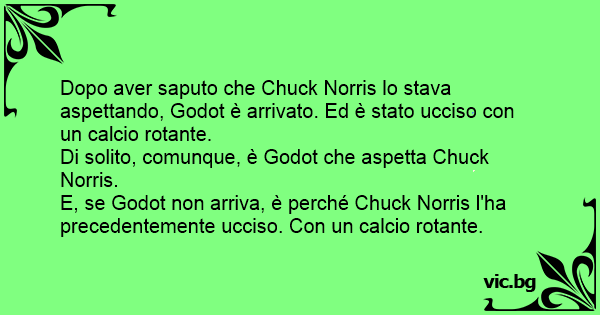 Dopo aver saputo che Chuck Norris lo stava aspettando, Godot è arrivato. Ed è stato ucciso соn un calcio rotante.