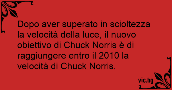 Dopo aver superato in scioltezza la velocità della luce, il nuovo obiettivo di Chuck Norris è di raggiungere entro il 2010 la velocità di Chuck Norris.