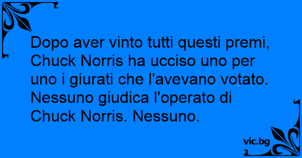 Dopo aver vinto tutti questi premi, Chuck Norris ha ucciso uno per uno i giurati che l'avevano votato. Nessuno giudica l'operato di Chuck Norris. Nessuno.