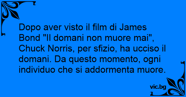 Dopo aver visto il film di James Bond "Il domani non muore mai", Chuck Norris, per sfizio, ha ucciso il domani. Da questo momento, ogni individuo che si addormenta muore.