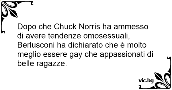 Dopo che Chuck Norris ha ammesso di avere tendenze omosessuali, Berlusconi ha dichiarato che è molto meglio essere gаy che appassionati di belle ragazze.