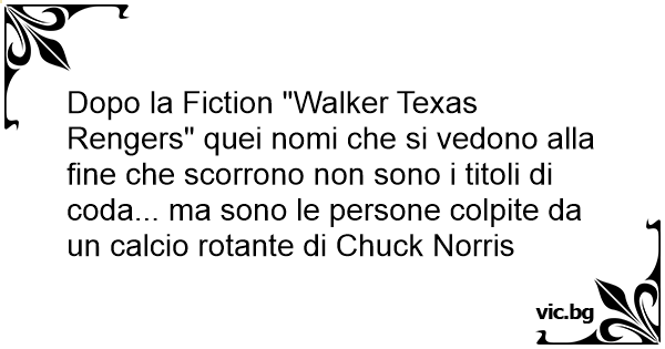 Dopo la Fiction "Walker Texas Rengers" quei nomi che si vedono alla fine che scorrono non sono i titoli di coda... ma sono le persone colpite da un calcio rotante di Chuck Norris