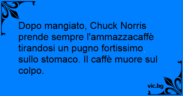 Dopo mangiato, Chuck Norris prende sempre l'ammazzacaffè tirandosi un pugno fortissimo sullo stomaco. Il caffè muore sul colpo.