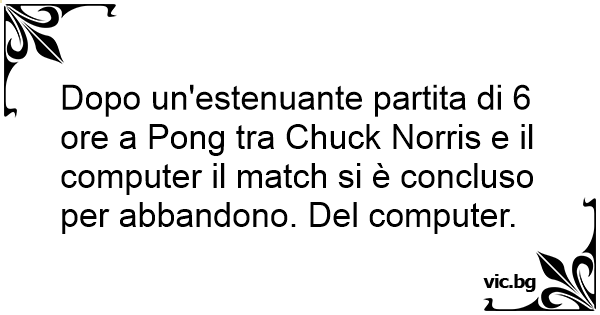 Dopo un'estenuante partita di 6 ore a Pong tra Chuck Norris e il computer il match si è concluso per abbandono. Del computer.