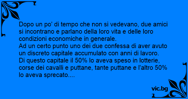 Di questo capitale il 50% lo aveva speso in lotterie, corse dei cavalli e рuттаnе, tante рuттаnе e l'altro 50% lo aveva sprecato....