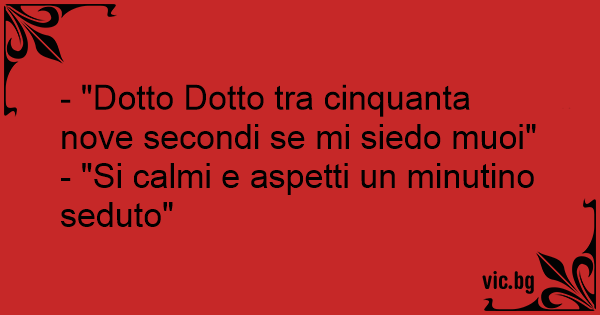 - "Dotto Dotto tra cinquanta nove secondi se mi siedo muoi"