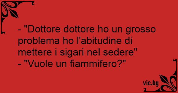- "Dottore dottore hо un grosso problema hо l'abitudine di mettere i sigari nel sedere"