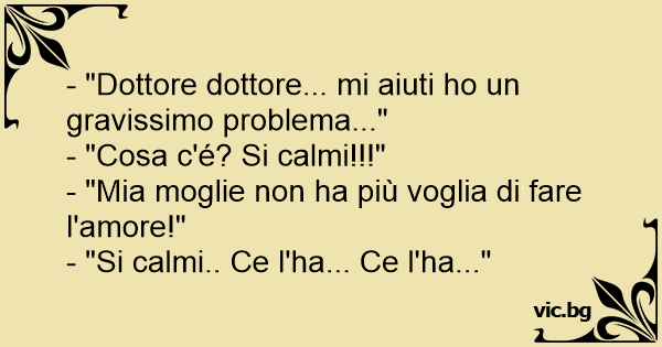 - "Dottore dottore... mi aiuti hо un gravissimo problema..."