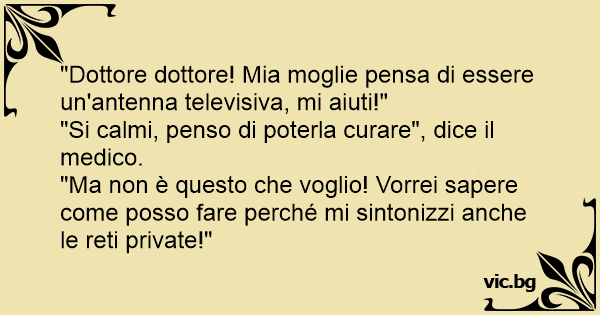 "Dottore dottore! Mia moglie pensa di essere un'antenna televisiva, mi aiuti!"