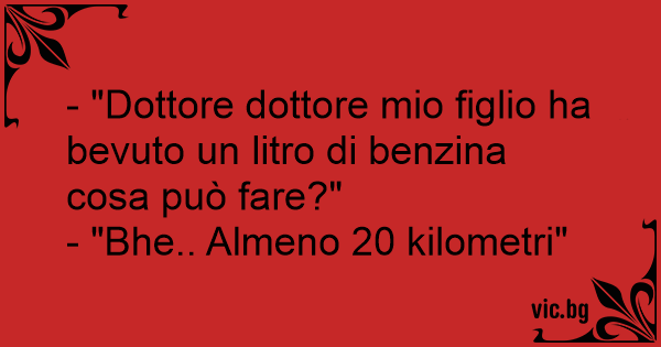 - "Dottore dottore mio figlio ha bevuto un litro di benzina cosa può fare?"