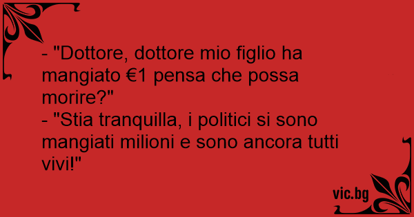 - "Dottore, dottore mio figlio ha mangiato €1 pensa che possa morire?"