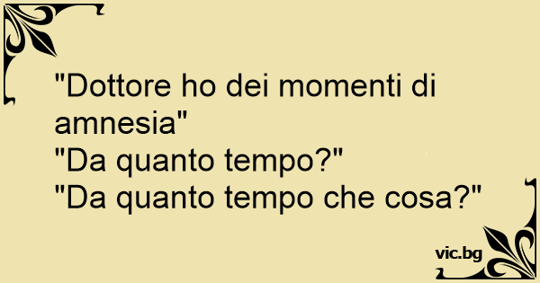 - "Dottore, sono qui da lei, perchè da un po' di tempo soffro di amnesia" - "Da quando soffre di questo disturbo?" - "Ma di cosa sta parlando!?"