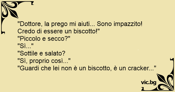 "Dottore, la prego mi aiuti... Sono impazzito! Credo di essere un biscotto!"