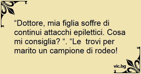 “Dottore, mia figlia soffre di continui attacchi epilettici. Cosa mi consiglia? “. “Le trovi per marito un campione di rodeo!