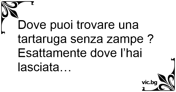 Dove puoi trovare una tartaruga senza zampe ? Esattamente dove l’hai lasciata…