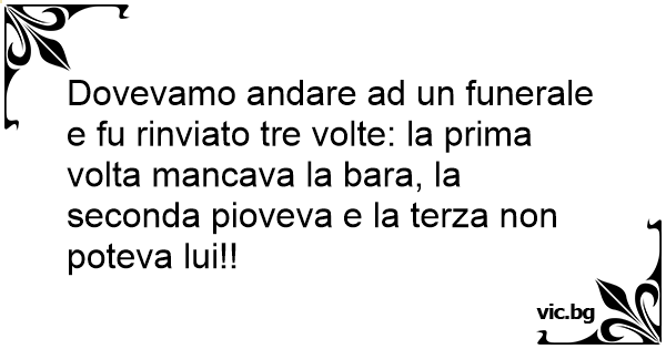Dovevamo andare ad un funerale e fu rinviato tre volte: la prima volta mancava la bara, la seconda pioveva e la terza non poteva lui!!