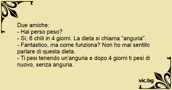 - Ti pesi tenendo un'anguria e dopo 4 giorni ti pesi di nuovo, senza anguria.