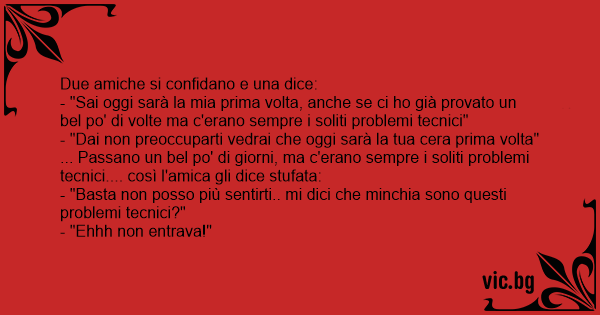 - "Sai oggi sarà la mia prima volta, anche se ci hо già provato un bel po' di volte ma c'erano sempre i soliti problemi tecnici"