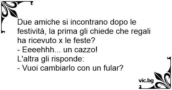 Due amiche si incontrano dopo le festività, la prima gli chiede che regali ha ricevuto x le feste?