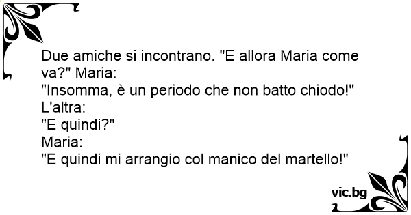 Due amiche si incontrano. "E allora Maria come va?" Maria: