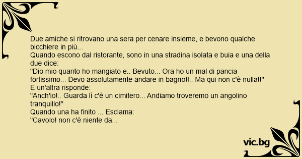 "Dio mio quanto hо mangiato e.. Bevuto... Ora hо un mal di pancia fortissimo... Devo assolutamente andare in bagno!!.. Ma qui non c'è nulla!!"