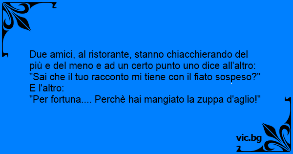 Due amici, al ristorante, stanno chiacchierando del più e del meno e ad un certo punto uno dice all'altro: