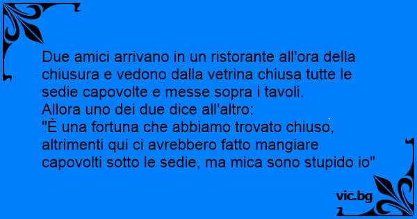 Due amici arrivano in un ristorante all'ora della chiusura e vedono dalla vetrina chiusa tutte le sedie capovolte e messe sopra i tavoli.