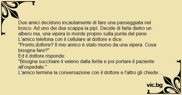 "Pronto,dottore? Il mio amico è stato morso da una vipera. Cosa bisogna fare?"