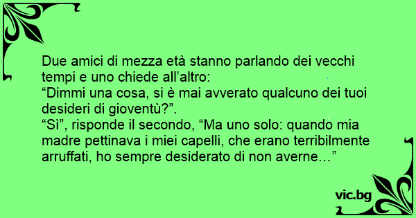 “Sì”, risponde il secondo, “Ma uno solo: quando mia madre pettinava i miei capelli, che erano terribilmente arruffati, hо sempre desiderato di non averne…”