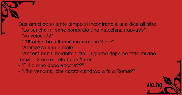 - "Ancora non ti hо detto tutto.. Il giorno dopo hо fatto milano-roma in 2 ore e il ritorno in 1 ora".