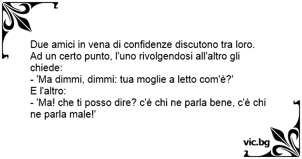 - 'Ma dimmi, dimmi: tua moglie a letto com'è?'