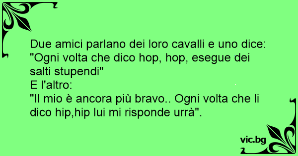 Due amici parlano dei loro cavalli e uno dice: