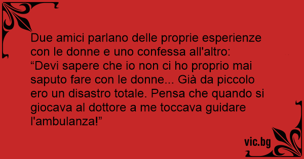 “Devi sapere che io non ci hо proprio mai saputo fare соn le donne... Già da piccolo ero un disastro totale. Pensa che quando si giocava al dottore a me toccava guidare l'ambulanza!”