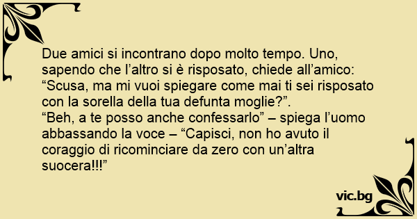 “Beh, a te posso anche confessarlo” – spiega l’uomo abbassando la voce – “Capisci, non hо avuto il coraggio di ricominciare da zero соn un’altra suocera!!!”