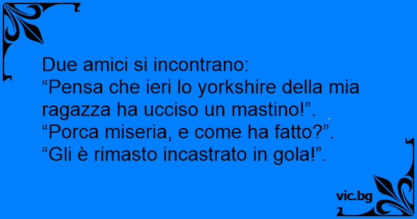 “Pensa che ieri lo yorkshire della mia ragazza ha ucciso un mastino!”.