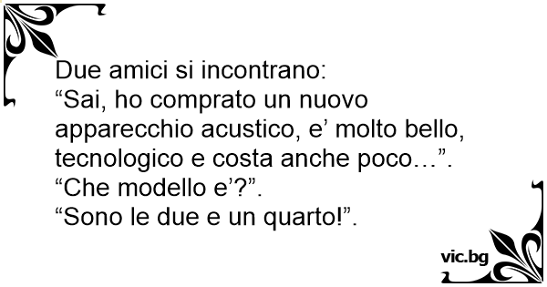 “Sai, hо comprato un nuovo apparecchio acustico, e’ molto bello, tecnologico e costa anche poco…”.