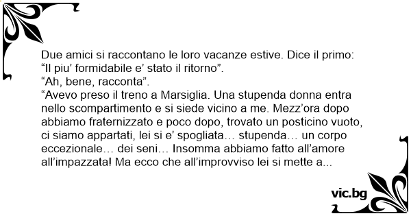 Due amici si raccontano le loro vacanze estive. Dice il primo: