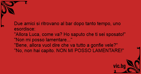 Due amici si ritrovano al bar dopo tanto tempo, uno esordisce:
